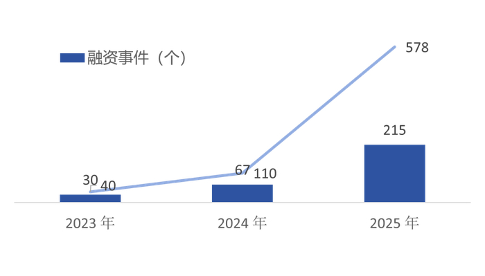 根据融中数据统计,2025年全球人形机器人领域融资规模出现明显跃迁,融资事件数量由67起提升至215起,增幅约221%,融资金额由110亿元增长至578亿元,增幅约425%。