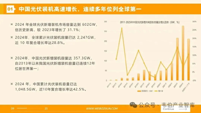 图表 57:2011-2025年中国光伏新增并网装机容量及增长趋势(GW,%)