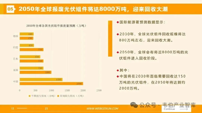 IRENA和IEA联合发布的报告预测:世界光伏组件报废量到2050年将达到7800万吨,约43亿块报废光伏组件需要处理。