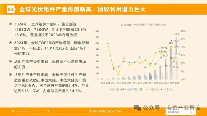 图表 77:2010-2024年全球光伏组件产能、产量及同比增长情况(GW,%)