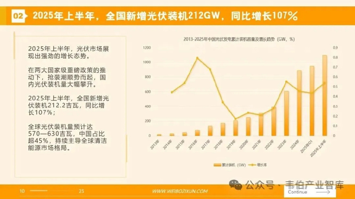 图表 60:2013-2025年全国光伏发电累计装机容量及增长趋势(GW,%)