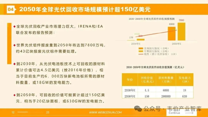 一、IRENA和IEA联合预测:到2050年约43亿块报废光伏组件需处理