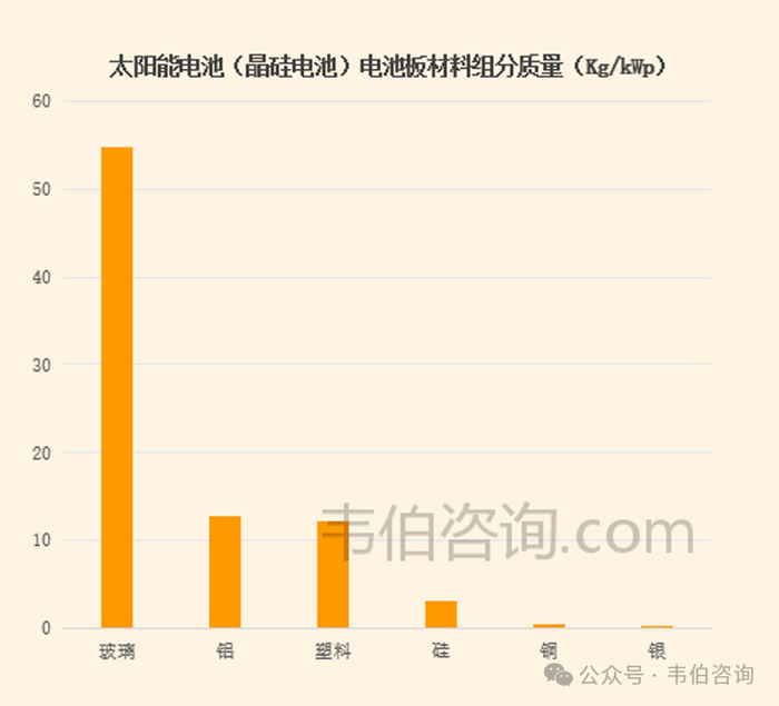 资料来源:Wind、韦伯咨询(2)组分回收传统晶硅退役组件的电池回收,主要依托选择性浸提、沉淀、萃取等方法,将电池片中贵重金属(银、铜等)分别回收。另外,对于从组件拆解下来的完整电池片,可考虑进行电池片修复工序,使其恢复可使用的光电转换效率,再次进入光伏应用链条。