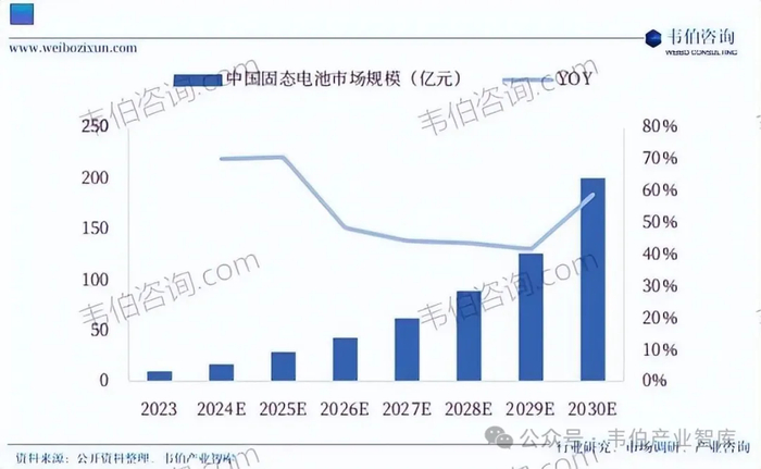 2024年,中国固态电池市场规模17亿元,同比增长70%,预计2030年有望增长至200亿元。