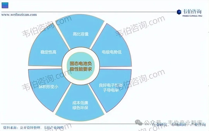 而负极材料应具备较高比容量、较低的电极电势、与固态电解质良好兼容、体积膨胀系数低、良好的电子和离子电导率等特性