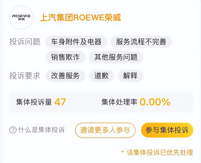 在黑猫投诉平台,车主们对上汽荣威进行了集体投诉。