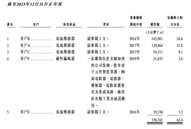 各期,希磁科技来自前五大客户的收入分别占总收入的65.2%、62.4%、62.5%及58%,来自最大客户的收入分别占有关期间总收入的31.3%、24.6%、20.9%及17.8%。