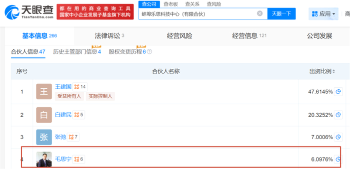 毛思宁已于2023年8月不再担任公司任何职务,招股书中也未披露其持股情况。但据瑞财经《预审IPO》通过天眼查获悉,他目前持有公司员工持股平台蚌埠乐思约6.1%的权益。