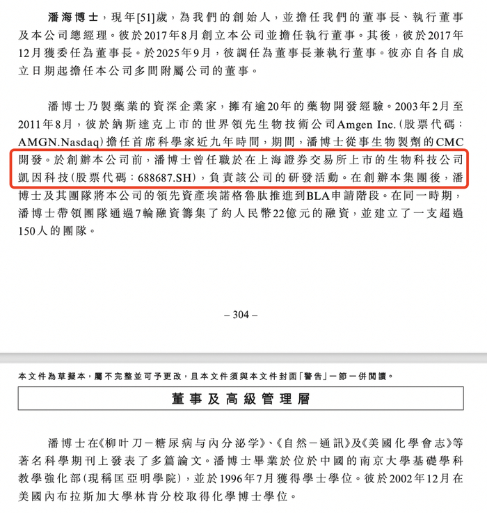 资料显示,潘海博士,现年51岁,为创始人,并担任公司董事长、执行董事及公司总经理。其于2017年8月创立公司并担任执行董事。其后,其于2017年12月获委任为董事长。于2025年9月,其调任为董事长兼执行董事。其亦自各自成立日期起担任公司多间附属公司的董事。