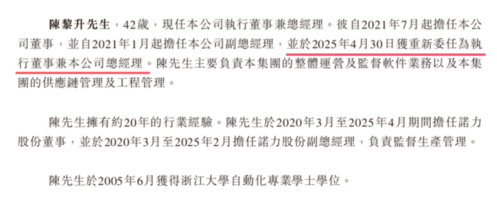 陈黎升,42岁,2021年7月起担任公司董事,2021年1月起担任公司副总经理,并于2025年4月30日获重新委任为执行董事兼总经理。