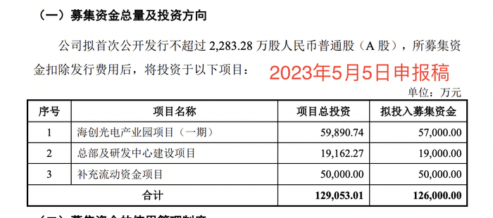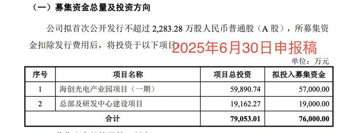 海创光电最初计划募资12.6亿元,后下调到寻求募资7.6亿元,募资缩水39.68%。其中,5.7亿元用于海创光电产业园项目(一期),1.9亿元用于总部及研发中心建设项目。
