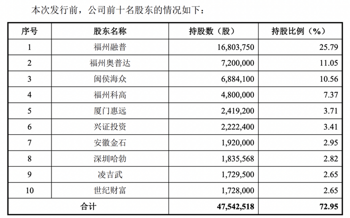 海创光电的实际控制人为凌吉武。凌吉武直接持有公司2.65%的股权。同时,凌吉武持有公司控股股东福州融普66.67%的股权,通过福州融普控制公司25.79%的表决权。加上其一致行动人张哨峰、林斌分别直接持有公司0.88%的股权,凌吉武直接和间接合计控制公司30.21%的表决权。