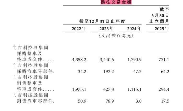 2022年-2025年上半年,千里科技向吉利采购整车及整车成套件花费43.58亿元、34.41亿元 、17.91亿元及7.71亿元。