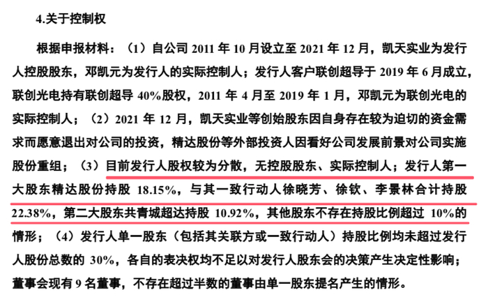 自公司2011年10月设立至2021年12月,凯天实业为公司控股股东,邓凯元为实际控制人;公司客户联创超导于2019年6月成立,联创光电持有联创超导 40%股权,2011年4月至2019年1月,邓凯元为联创光电的实际控制人。