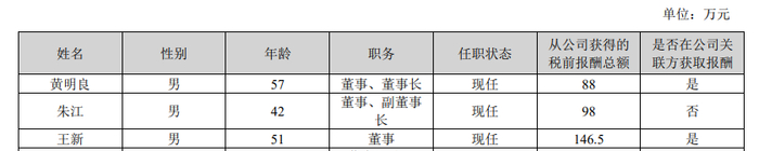 据东方财富网数据,黄明良2024年所获薪酬为88万元,时任董事的王新同年领薪146.5万元。