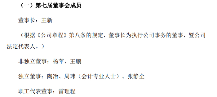 换届完成后,第六届董事会董事长黄明良、副董事长朱江、独立董事江曙晖和李子扬不再担任公司相关董事职务,且不在公司任职;章威炜、汤璟蕾不再担任公司副总经理。
