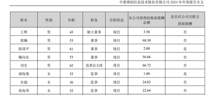 据中嘉博创2024年年报,张海英2024年领薪22.64万元。
