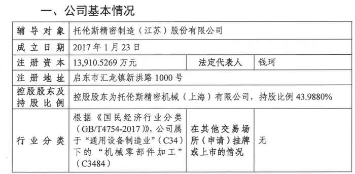 瑞财经 王敏 12月4日,托伦斯精密制造(江苏)股份有限公司(以下简称“托伦斯”)披露创业板IPO辅导工作完成报告,辅导机构为中金公司。