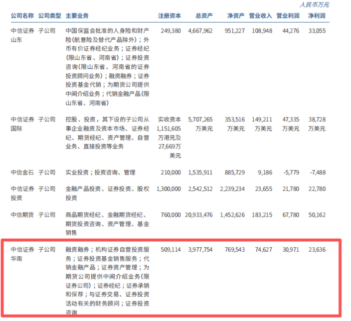 数据显示,今年上半年,中信证券华南子公司总资产为397.77亿元,净资产为76.95亿元,营业收入为7.46亿元,同比增长51.62%,净利润为2.36亿元,同比增长13.46%。