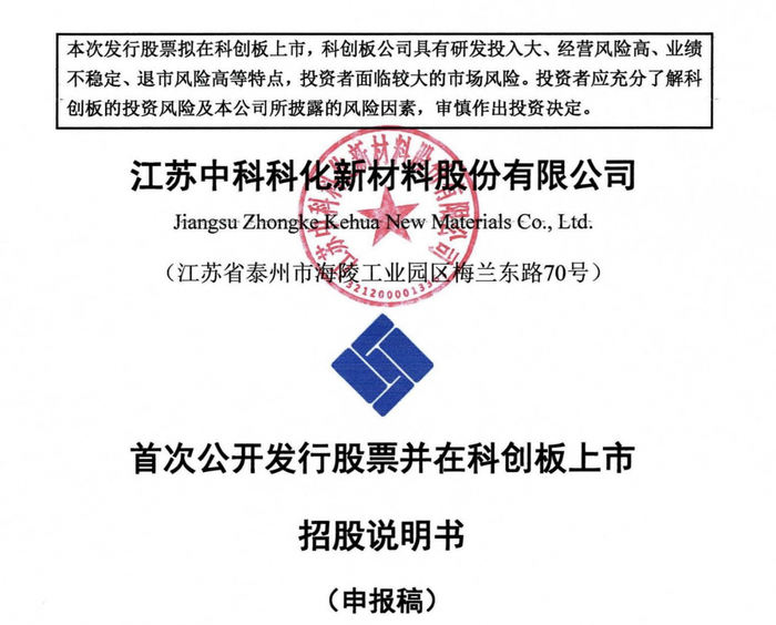 瑞财经 刘治颖12月5日,江苏中科科化新材料股份有限公司(以下简称:中科科化)科创板IPO获受理,保荐机构为招商证券,保荐代表人为黄文雯、李思博,会计师事务所为致同会计师事务所。