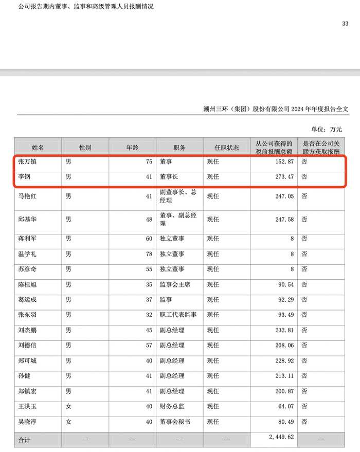 薪酬方面,2024年,李钢的年薪为273.47万元,冠绝董监高;张万镇的年薪为152.87 万元。