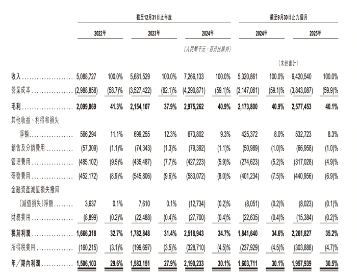 据招股书,2022年-2024年,三环集团实现收入分别为50.89亿元、56.82亿元、72.66亿元;年内利润分别为15.06亿元、15.83亿元、21.9亿元。