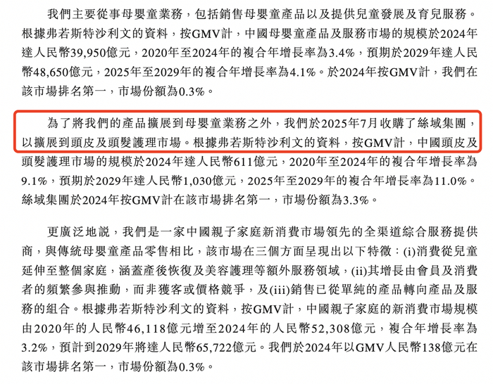为了将公司的产品扩展到母婴童业务之外,于2025年7月收购了丝域集团,以扩展到头皮及头发护理市场。更广泛地说,孩子王是一家中国亲子家庭新消费市场领先的全渠道综合服务提供商。
