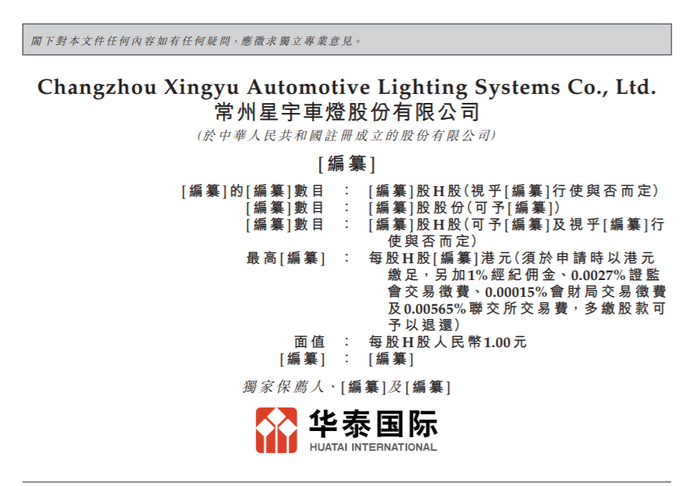 瑞财经 王敏 1月26日,港交所文件显示,常州星宇车灯股份有限公司(以下简称“星宇股份”)向港交所递交招股书,独家保荐人为华泰国际。