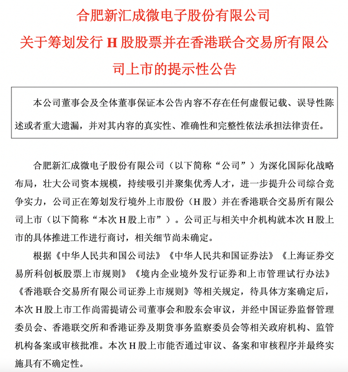 瑞财经 吴文婷 2月27日,汇成股份发布公告称,为深化国际化战略布局,壮大公司资本规模,持续吸引并聚集优秀人才,进一步提升公司综合竞争实力,公司正在筹划发行境外上市股份(H股)并在香港联合交易所有限公司上市。公司正与相关中介机构就本次H股上市的具体推进工作进行商讨,相关细节尚未确定。