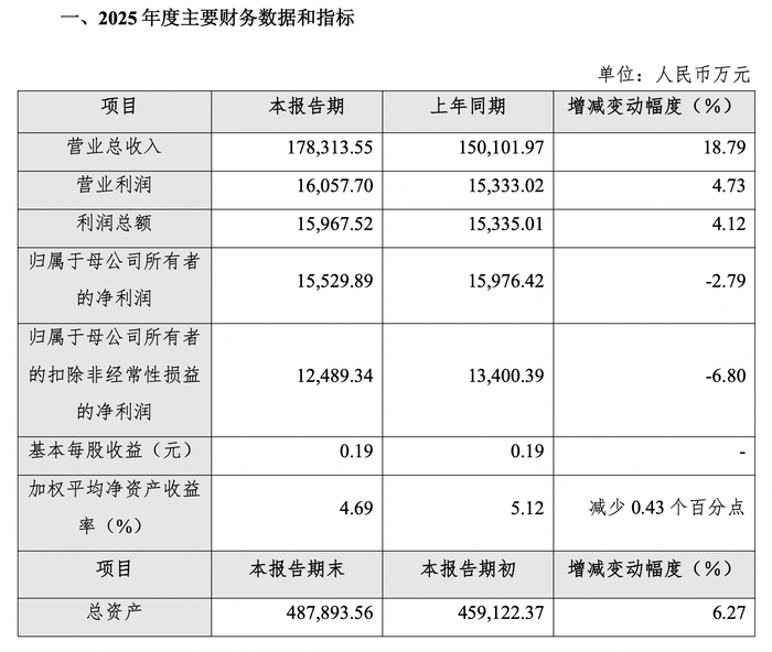 2025年,汇成股份实现营业总收入为17.83亿元,同比增长18.79%;归属于母公司所有者的净利润为1.55亿元,同比减少2.79%。