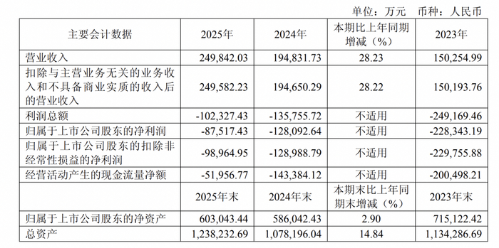 2025年,君实生物实现营业收入24.98亿元,同比增长28.23%;归属于上市公司股东的净利润-8.75亿元,上年同期为-12.9亿元。