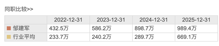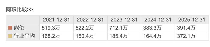 2025年,总经理邹建军薪酬为989.4万元,与上年同期相比增长10.09%;董事长熊俊薪酬为391.4万元,与上年同期相比增长2.11%。