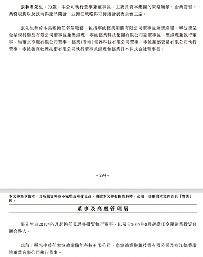 此前,张和君曾任宁波德业储能科技有限公司、宁波德业变频技术有限公司及浙江德业环境电器有限公司执行董事。