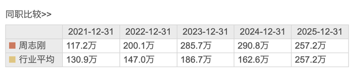 具体来看,2025年,周志刚薪酬为257.2万元,同比减少11.55%;廖结兵薪酬为180.7万元,同比增长11.68%。