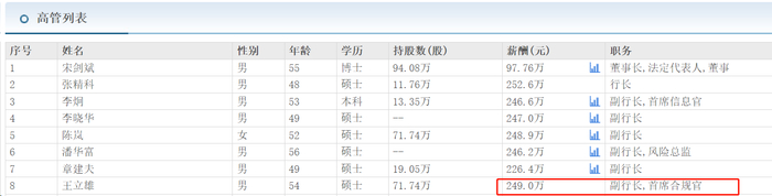 2024年,王立雄薪酬为249万元。