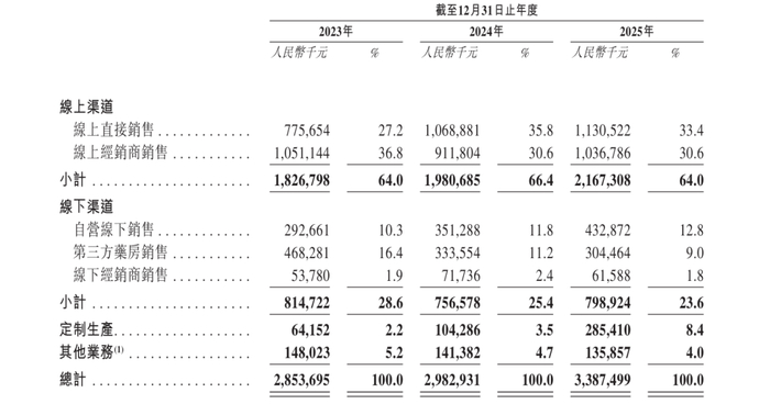 而线下渠道中,可孚医疗的自营线下销售表现较为突出,各期收入分别为2.93亿元、3.51亿元及4.33亿元。