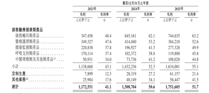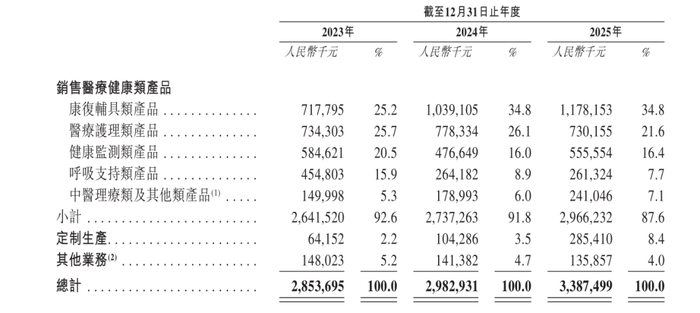 公司该业务的增长主要由康复辅具类产品带动。各期该类产品的收入分别为7.18亿元、10.39亿元及11.78亿元。