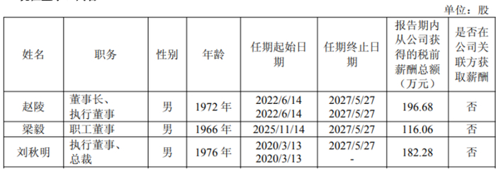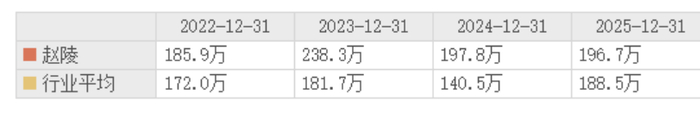2022年-2025年,赵陵获取薪酬分别为185.9万元、238.3万元、197.8万元、196.7万元。