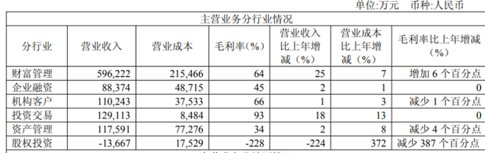 分行业来看,光大证券主要营收仍依赖于财富管理业务,该业务占比五成以上。