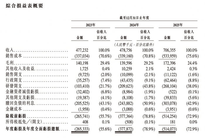 据招股书,2023年-2025年,四维智联实现收入分别为4.77亿元、4.79亿元、7.06亿元;年度亏损及年度全面亏损总额分别为2.65亿元、3.78亿元、5.14亿元。可见,2025年其营收同比增长47.54%。