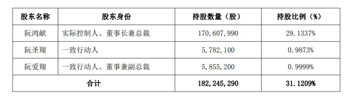 截至公告披露日,阮鸿献本人直接持有一心堂1.7亿股,占公司总股本的 29.13%,两位女儿各自持有约1%的股份,父女三人合计持股比例达到 31.12%。