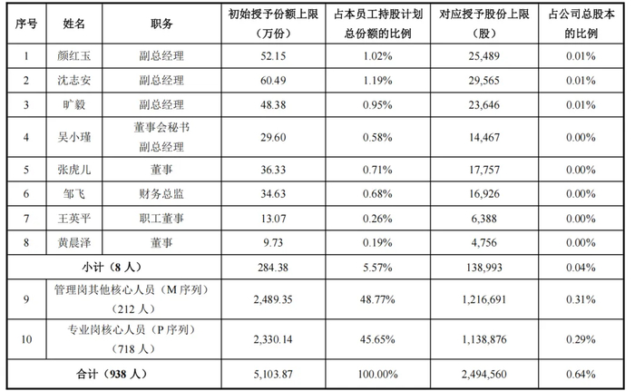 根据《草案》,此次员工持股计划参与对象预计不超过938人,涵盖公司(含子公司)专业岗(P序列)及管理岗(M序列)的核心人员。