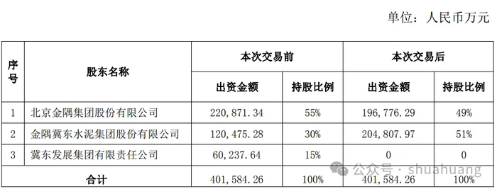 本次交易完成后,金隅冀东对混凝土集团的持股比例将升至51%,后者将正式成为上市公司控股子公司,纳入合并报表范围。