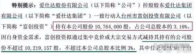 同时,爱仕达近日公告,控股股东一致行动人富创投资拟减持不超1021.92万股,即不超公司总股本3%。关键在于,富创投资当前仅持有公司3.16%股权,顶格减持后将几近清仓,且其第一大股东为爱仕达创始人、董事长陈合林。创始人关联方拟清仓式减持的消息,直接导致公司股价波动,公告后股价连跌4日,累计下跌9.4%。