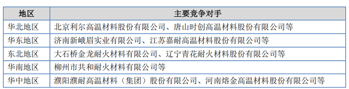 目前,有少数国内知名耐火材料企业在全国布局,并向上游原材料延伸,拥有镁制耐火原料矿山,如北京利尔、濮耐股份。大部分耐火材料企业深耕区域市场,形成了较高的市场影响力,例如江苏嘉耐高温材料股份有限公司位于江苏省宜兴市,在华东地区具有较大影响力。