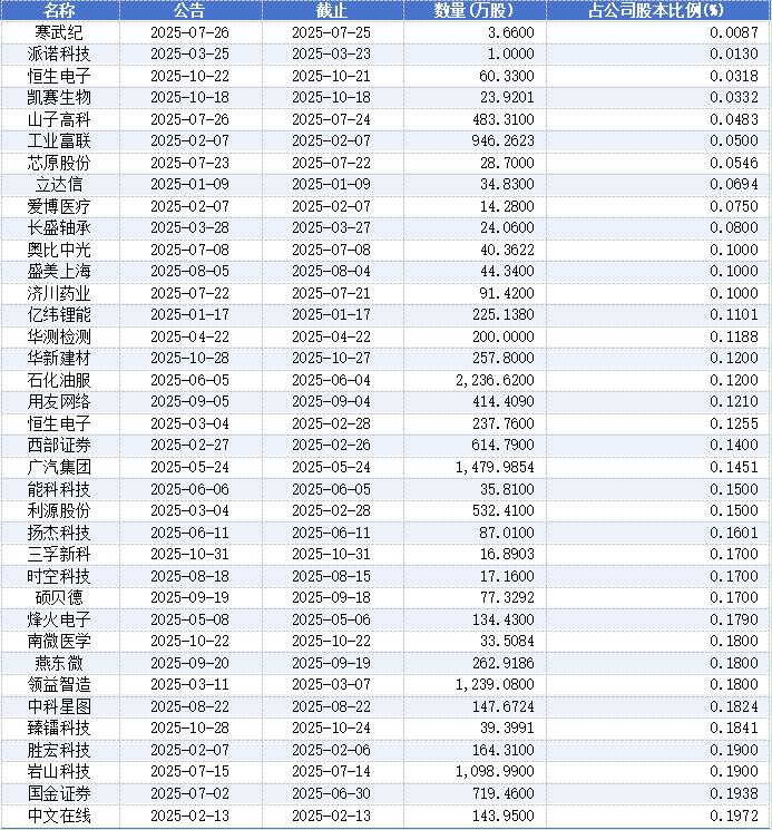 根据同花顺数据,除了寒武纪、山子高科之外,仍有超过30家公司的回购比例不达0.2%。
