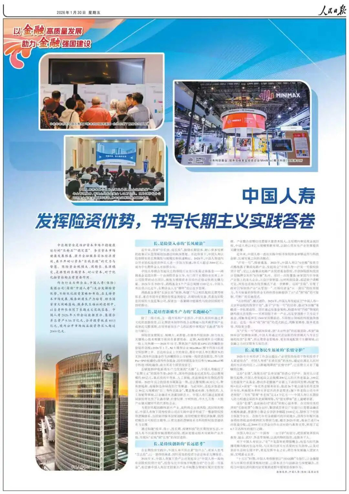 2025年中央经济工作会议提出:“必须坚持投资于物和投资于人紧密结合”。中国人寿将“长钱长投”的坐标,锚定在满足人民对美好生活的向往上,以跨越周期的“长情守护”,让长期主义有了温暖的注脚。