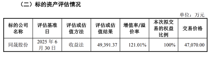 评估报告显示,采用资产基础法评估,同晟股份估值为2.62亿元,而采用收益法评估,估值则达4.939亿元,对应溢价率121%。元力股份最终选择收益法评估结果作为定价依据,原因是“企业已投资的水玻璃生产线、白炭黑生产线目前已达产,收益法评估能合理反映现有已投资资产的价值,能更好体现企业整体的成长性和盈利能力”。