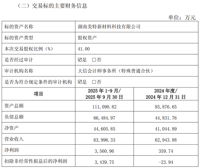 来源:公司官网雪天盐业(600929.SH)日前公告,拟向控股股东2.6亿收购湖南美特新材料科技有限公司(下称“美特新材”)41%股权。收购完成后,雪天盐业将成为美特新材的控股股东,合计持股61%。