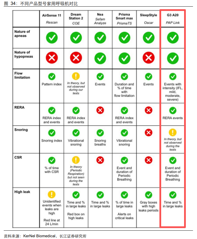 鱼跃医疗联合中科院开发的传感器实现95.4%本土化率,在降低成本的同时推动设备普及;瑞迈特则实现风机等核心部件国产化,其G3 A20型号在呼吸事件探测、气流受限响应、漏气补偿等关键参数上,已与全球龙头瑞思迈的旗舰产品AirSense 11处于同一水平线。